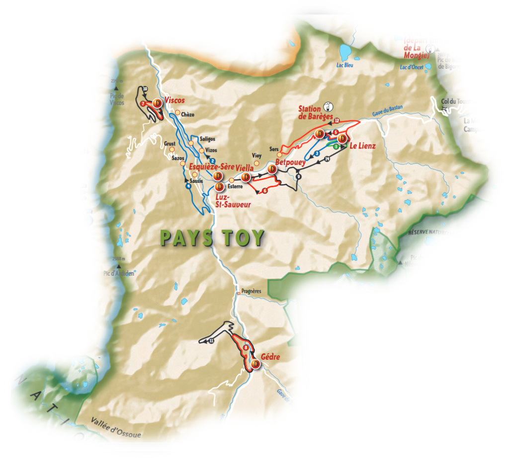 5 secteurs : Pays de Lourdes – Vallée d’Argelès-Gazost – Val d’Auzin – Vallée de Cauterets – Pays Toy