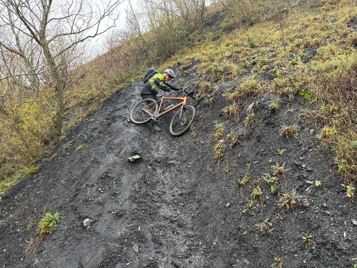 En effet, le magnifique parcours n’était pas du tout ennuyeux avec ses nombreux terrils et sa faible quantité de bitume. Hélas, le fléchage n’était pas du tout à la hauteur du splendide tracé. On a souvent cherché notre direction sur la 40 VTT. Vraiment dommage car le parcours parfois exigeant ne nous a pas laissé de répit.