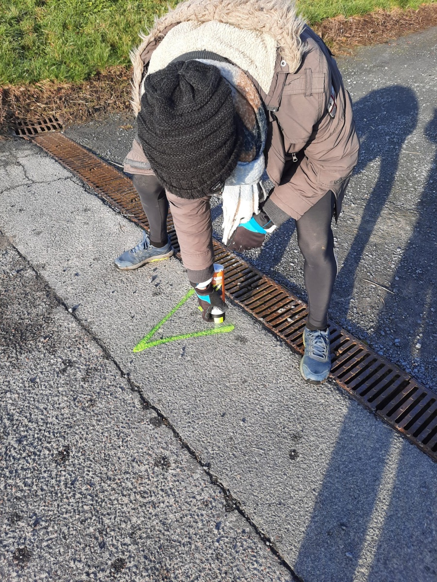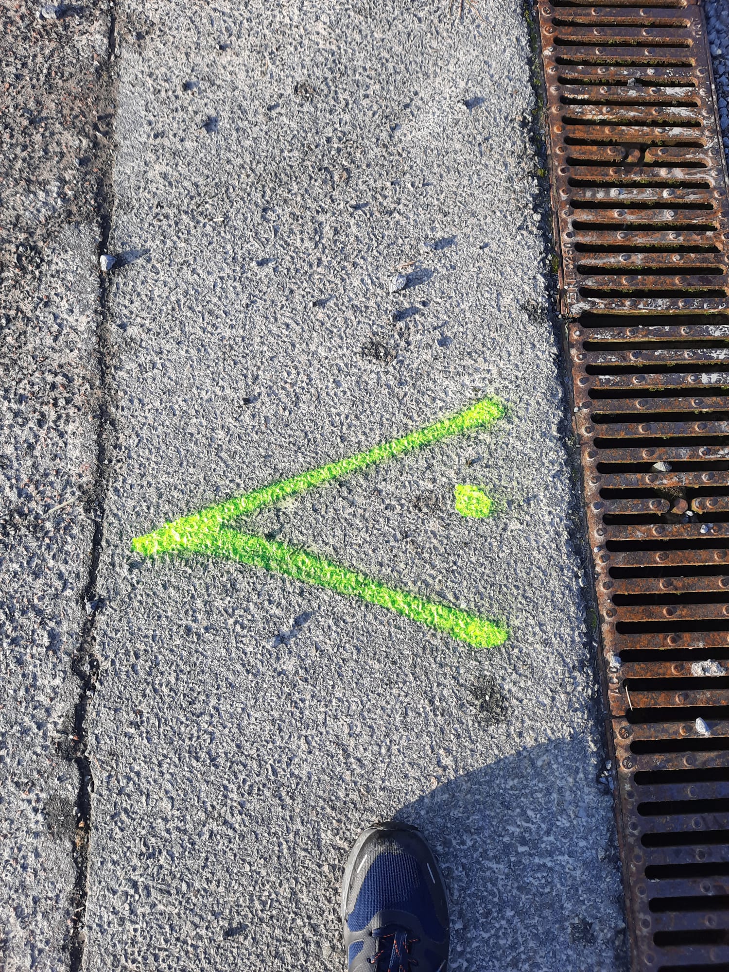 Fléchage à terre et aérien en jaune pour les marcheurs :