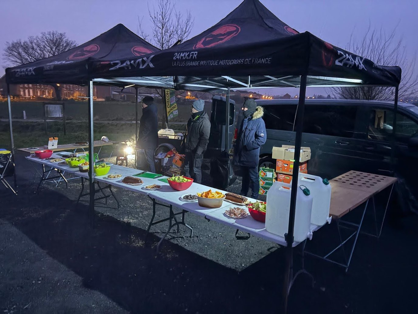 avec notamment des oranges et des bananes de notre partenaire O’TERA AVELIN + soupe chaude + spéculos + biscuits + barre bretonne + saucisses + pâté-croûte + bien d’autres gourmandises !