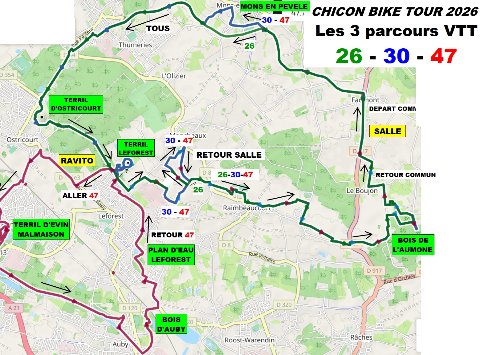 Comme en 2025, un parcours purement GRAVEL (sans les terrils et passages techniques) de 56 km sera proposé (via un lien GPS) avec un ravito (commun aux VTT) à mi-distance. Pour cette année, nous essaierons de vous faire suivre au plus près le grand parcours VTT avec bien entendu quelques variantes. Comme dit plus haut, une trace plus réduite de 40 km vous sera également proposée.A noter enfin, que vous pouvez vous faire un autre parcours alternatif (non officiel) en commençant par le 56 Gravel via GPS jusqu’au ravito, puis suivre la 47 VTT (qui sera fléché). Vous obtiendrez un 60 km mixant les 2 disciplines en ayant toutes les parties techniques comme les terrils d’Evin-Malmaison et Leforest. Une trace forestière (les drêves de la forêt de Phalempin en première partie) et les spots techniques des terrils. Un beau défi sportif en perspective…. Voir tout en bas de cette page. |